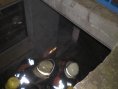 Der Brandbereich, simuliert durch orangeleuchtende Wärmelampen, war