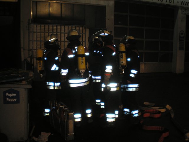 ebenfalls nur schemenhaft durch den starken Rauch zu finden. Die Mannschaft