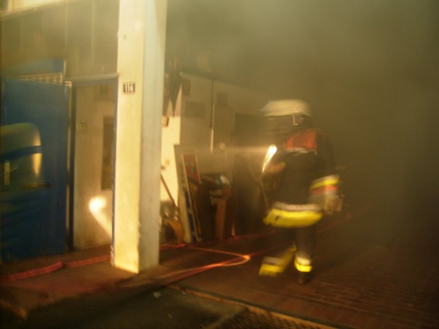 lagern. Es herrscht sehr starke Verqualmung und enorme Hitzeentwicklung